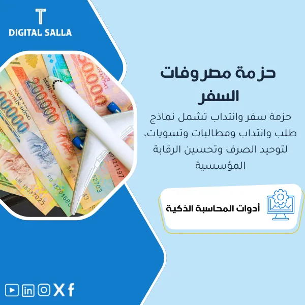 سطر فرعي: Travel Expense Pack لإدارة رحلة السفر من طلب سفر واعتماد → سلفة/بدل → مصروفات فندق وتذاكر → تسوية → JE Log وملف تسليم Month‑End داخل Closing Pack